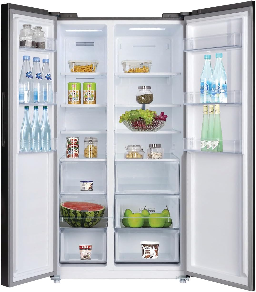 ثلاجة جانبية مع سعة 525 لتر ولون رمادي أنيق، مزودة بضاغط إنفرتر تحافظ على الطاقة مع تشغيل هادي وإضاءة LED لضمان وضوح أفضل. هالمواصفات تجعلها خيار ممتاز لكل بيت.